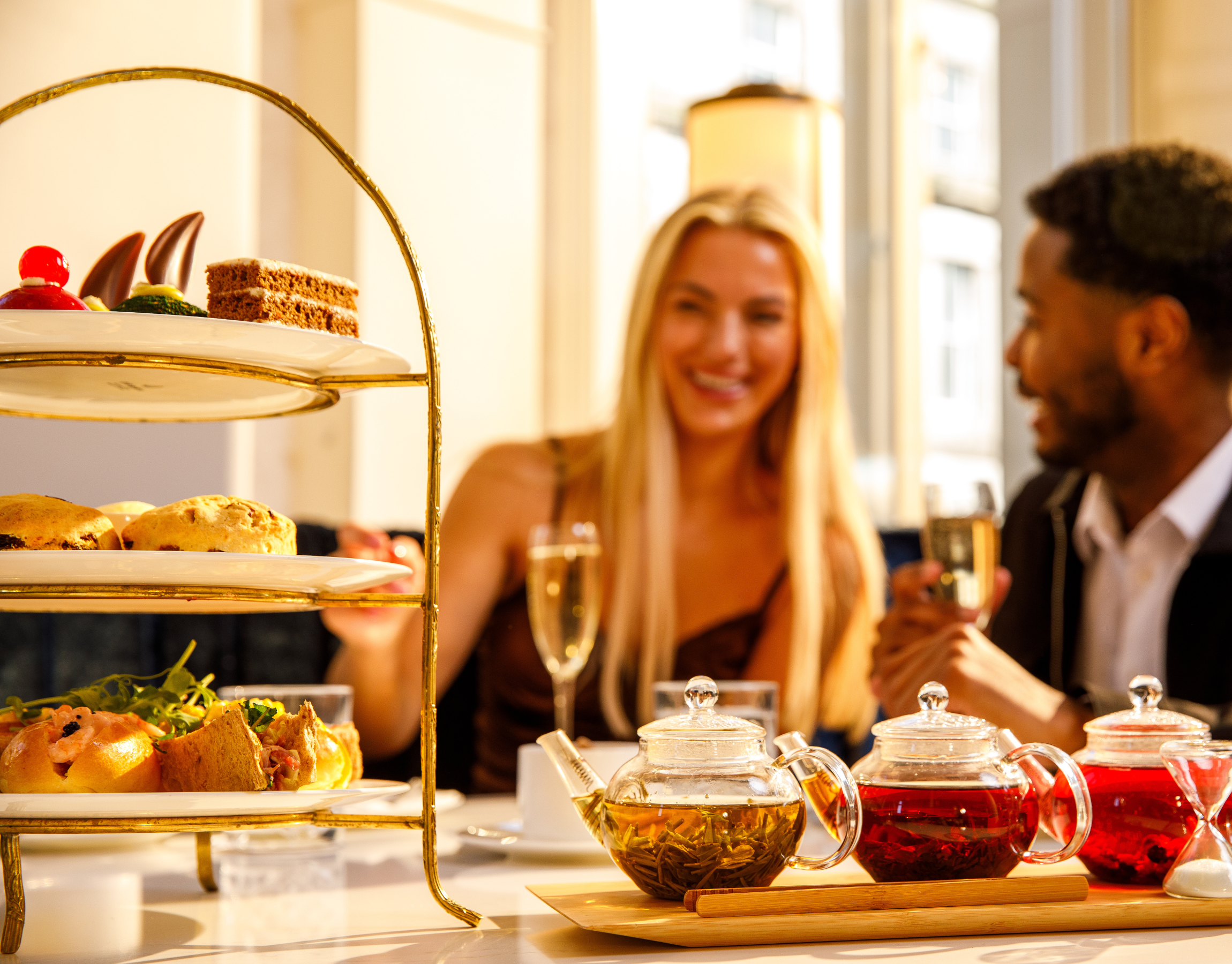 Our elegantly designed tearoom invites guests to indulge in a truly memorable experience, infused with a distinctive Liverpool charm. Guided by our knowledgeable hosts, you’ll be taken on a journey through your experience and the rich history of our hotel before being welcomed by one of our expert Tea Sommeliers. Afternoon Tea begins with a delightful welcome platter, followed by a refined three-course service featuring freshly baked scones, delicate sandwiches, and exquisite desserts.